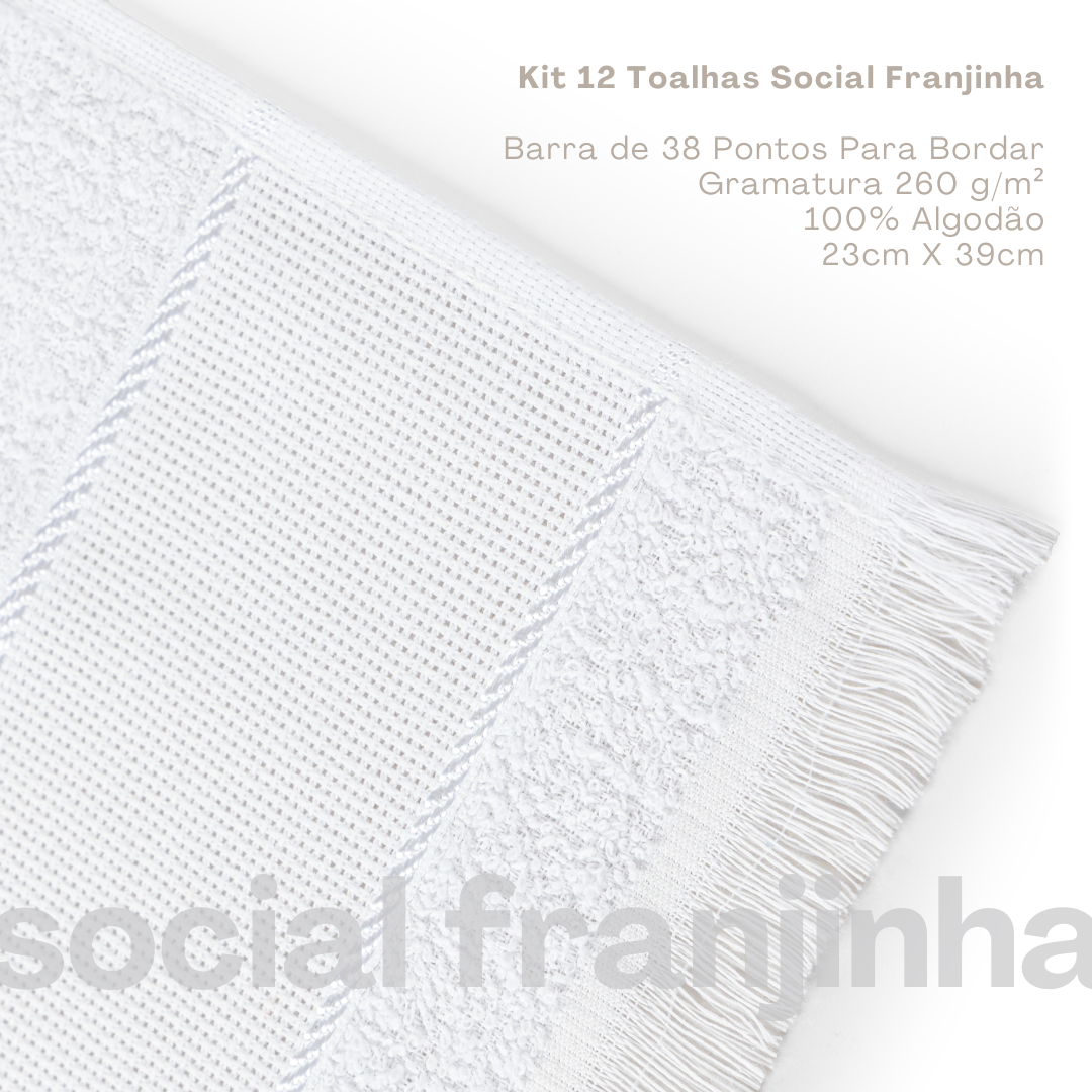 Kit 12 toalhas de lavabo social franjinha branco 23x39cm personalização manicure academia lancheira