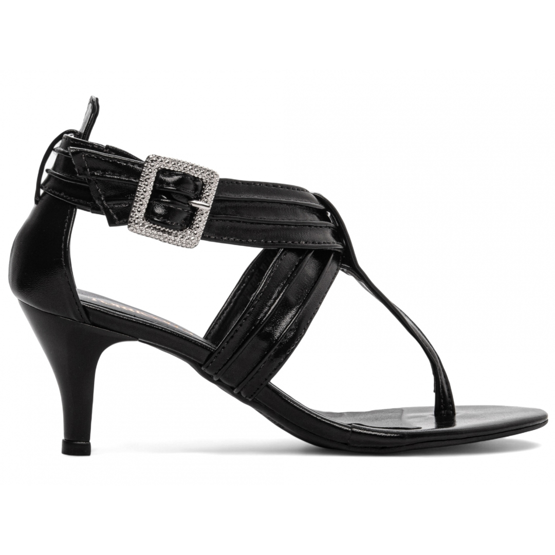 Sandália Torricella preta de dedo saltinho fino ajuste no tornozelo